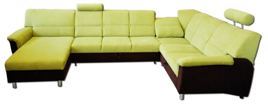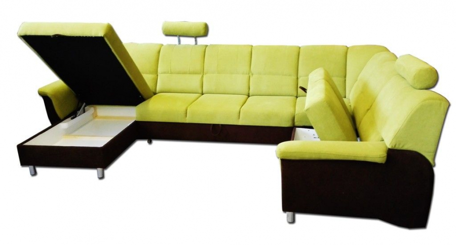Luxusní rohová sedací souprava s úložným prostorem a rozkladem na lůžko. Sedací souprava má očalouněná záda.