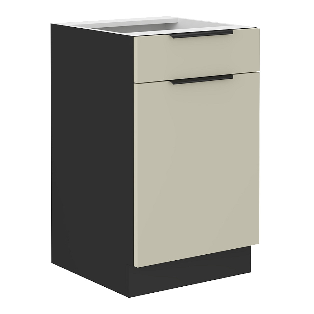 Spodní sektorové skříňky jsou dodávány včetně dolní lišty (sokla), bez pracovní desky. Pracovní desku o tloušťce 3,8 cm si můžete doobjednat v provedení marmur roma za cenu 1.650 Kč/bm.