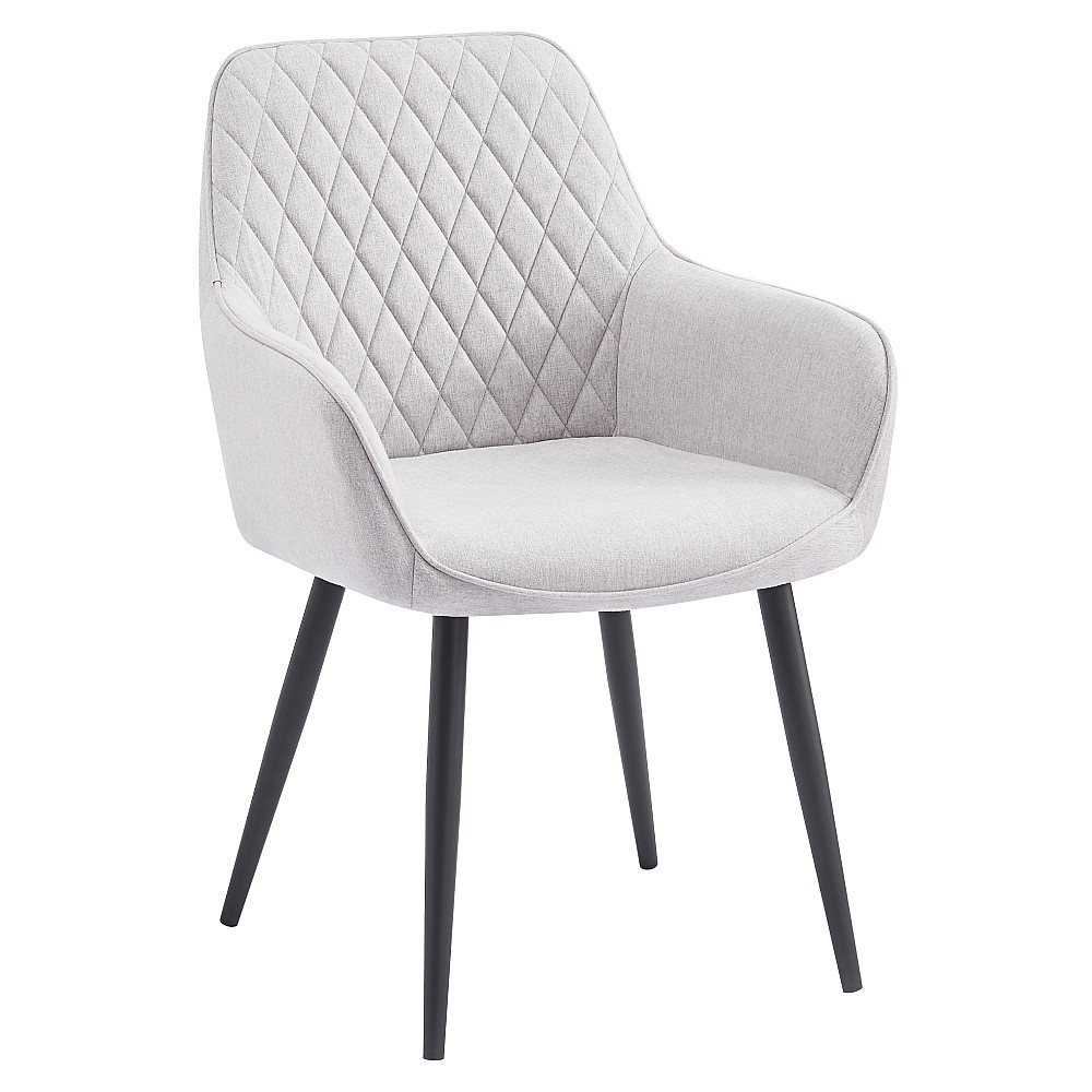 Materiál: látka Nea 03/kov Oděruodolnost textilie podle testu Martindale: 75 000 oděrů Barva: světle šedá/černá Rozměry (ŠxHxV): 55,5x58,5x83,5 cm Výška sedu: 47 cm Hloubka sedu: 45,5 cm Šířka sezení: 41,5 cm Výška zádové opěrky: 41 cm Nosnost: 90 kg Designové S měkkou sedací částí Dekorativně prošité Dodáváno v demontu