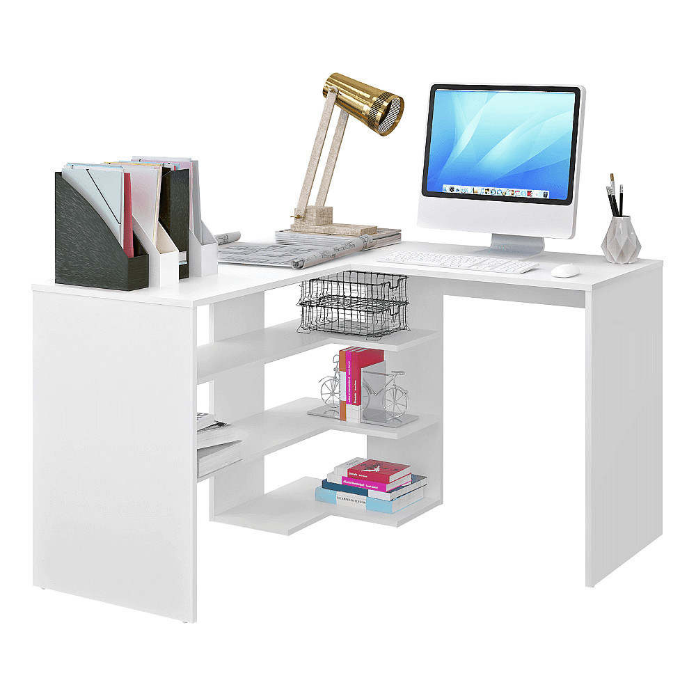 Materiál: DTD laminovaná Barva: bílá Rozměry (ŠxHxV): 120x120x75,4 cm Tloušťka materiálu: 1,6 cm Rohový Otevřený úložný prostor S policemi Výška mezi policemi: 22,8 cm Nosnost police: 5 kg Nosnost stolu: 35 kg Plastové nožičky-kluzáky Kvalitní slovenský výrobek Dodáváno v demontu
