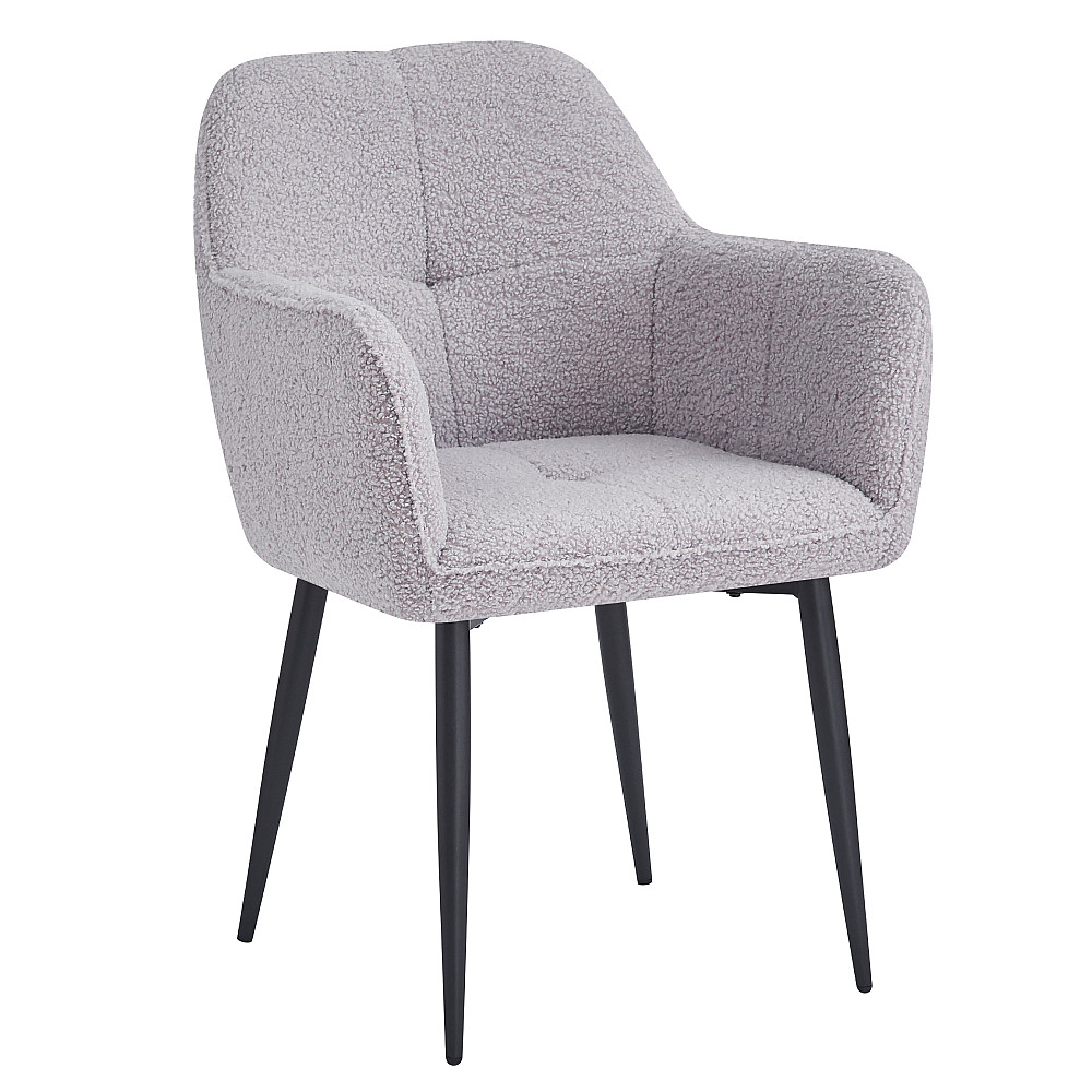 Materiál: látka Bouclé/kov Oděruodolnost textilie podle testu Martindale: 45 000 oděrů Barva: šedá/černá Rozměry (ŠxHxV): 57x61x84 cm Výška sedu: 44 cm Hloubka sedu: 45 cm Šířka sedu: 44 cm Šířka zádové opěrky: 44 cm Výška zádové opěrky: 40 cm Opěrky na ruce Dekorativně prošívané Designové Nosnost: 90 kg Dodáváno v demontu