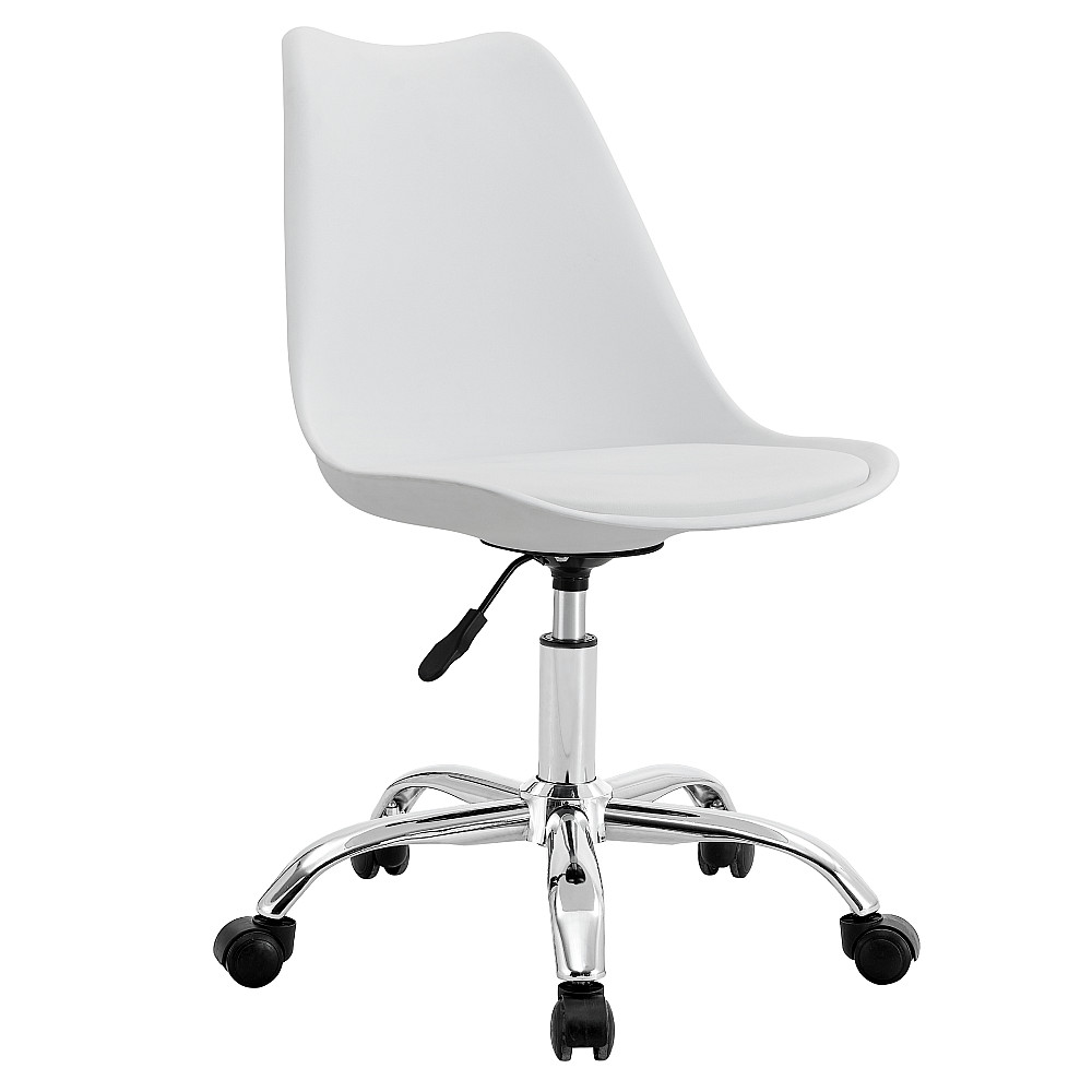 Materiál: plast/ekokůže/chrom Oděruodolnost textilie podle testu Martindale: 100 000 oděrů Barva: bílá/chromovaná Rozměry (ŠxHxV): 58x47x97-109 cm Nastavitelná výška sedu Výška sedu: 45-57 cm Hloubka sedu: 42 cm Nosnost: 100 kg Ergonomický tvar sedáku Na kolečkách Dodáváno v demontu
