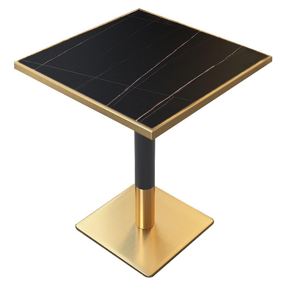 Jídelní bistro stůl, černý mramor/černá/zlatá, 70x70 cm, PRESTON