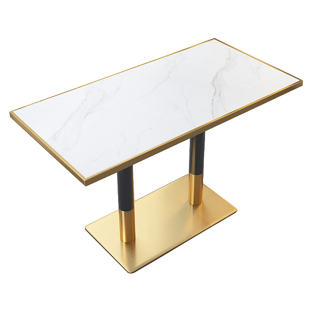 Jídelní bistro stůl, bílý mramor/černá/zlatá, 120x70 cm, DARIAN