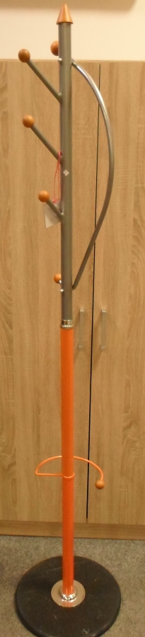 CHARLES - praktický stojanový věšák.MATERIÁL: kov + dřevo.PROVEDENÍ: stříbrná + oranžová + buk (viz foto).ROZMĚRY: průměr 38 cm, výška 180 cm.HMOTNOST: 9,6 kg.Dodáváno v demontu.