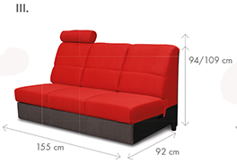 ESTER - III. - 3-sed, bez funkce.Rozměry: výška 94/109 cm, délka 155 cm, hloubka 92 cm.