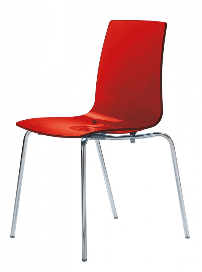 LOLLIPOP - moderní stohovatelná jídelní a konferenční židle.MATERIÁL: polykarbonát transparente, polypropylen lesk, nohy kov chrom (pr. 18 mm).Hmotnost židle je 5,3 kg.Stohovatelná.Maximální nosnost je 120 kg.PROVEDENÍ: bianco, transparente, rosso transparente, antracite transparente. ROZMĚRY: výška 83 cm, výška sedu 45 cm, hloubka 53 cm, šířka 48 cm.