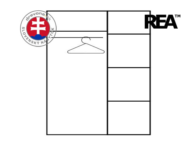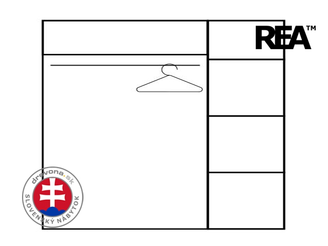 REA ATLANTA - šatní skříň s policemi (dle nákresu) a posuvnými dveřmi.