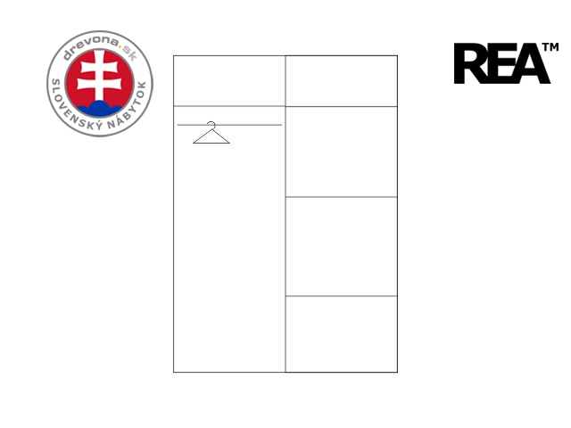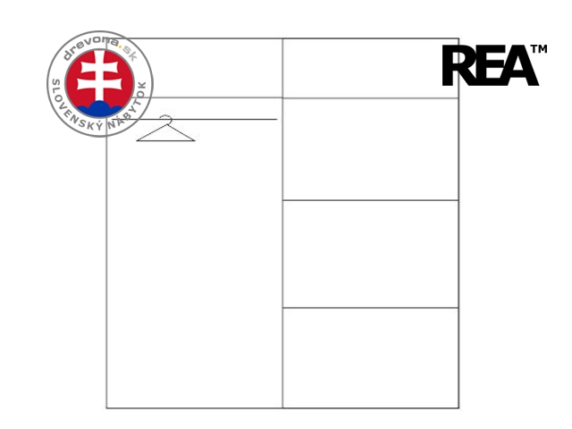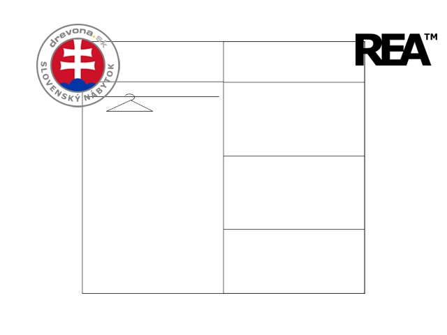 REA HOUSTON - moderní šatní skříň s posuvnými dveřmi a policemi dle nákresu.