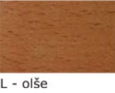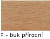 Dřevěné dílce pohovky lze vybrat z pěti barevných variant: P-přírodní, H-hnědá, T-třešeň, L-olše a W-wenge.