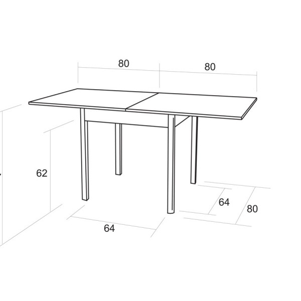 Rozměr mezi nohama stolu je 64 / 64 cm
