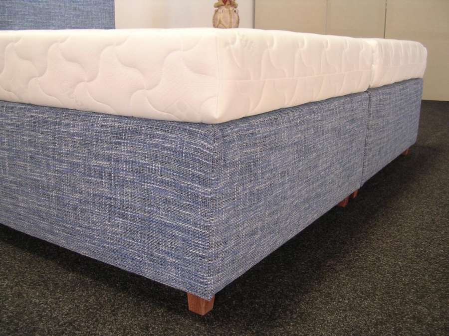 EURO BED "pevná" - jednoduché lůžko s pevným roštem a krátkým čelem, BEZ MATRACE.Speciální lůžka s volnou matrací vhodné pro domácnost i pro nejnáročnější hotelové provozy. Lůžka Euro Bed se vyrábí ve variantách: PEVNÁ - lůžko s pevným roštem, BOX SPRING - lůžko s pružinovým roštem (najdete na našich stránkách), LAMELOVÁ - lůžko s lamelovým roštem (najdete na našich stránkách).Kostra výrobku je tvořena kombinací masivu a velkoplošných dřevařských materiálů. Lůžko je standartně osazeno dřevěnýma nohama v přední části a zátěžové kolečka, umožňující snadnou manipulaci. Dřevo lze vybrat ze čtyř druhů barev: přírodní, olše, středně hnědá a tmavě hnědá.Velký výběr potahových látek.ROZMĚRY: šířka 90 cm, hloubka 200 cm, šířka čela 90 cm, výška čela 110 cm, tloušťka čela 5 cm.Standartní rozměry jednolůžek Euro Bed jsou od 200x80cm do 200x100cm. Dvojlůžka lze vyrobit až do šířky 200cm. V případě zájmu o jiný rozměr lůžka nás prosím kontaktujte.Lůžko je možné objednat i bez čela, cena na dotaz.ČESKÝ VÝROBEK!