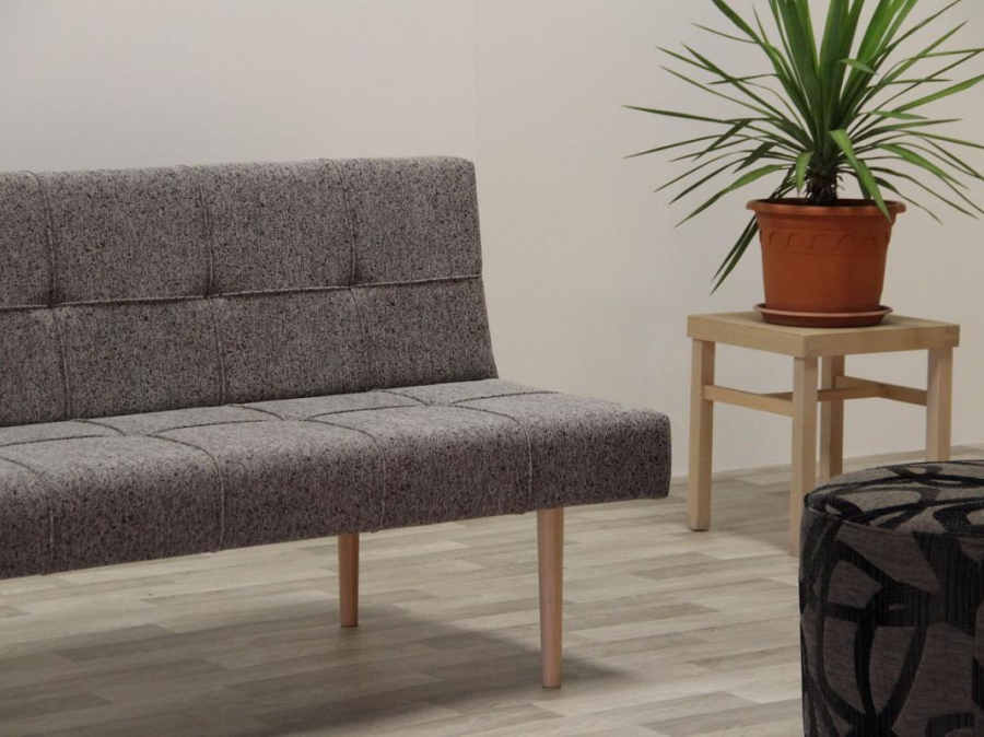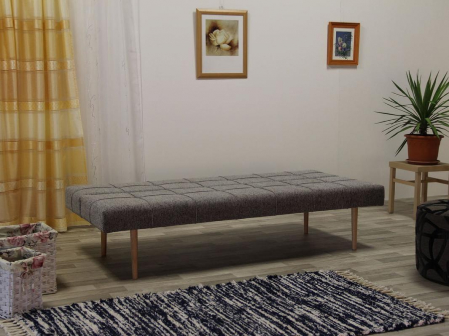 LINDA - sklopná čalouněná lavice s dřevěnýma nohama.Lavice sklopná je praktická lavice s jednoduchým a rychlým rozkládáním. Sklopenim opěradla vznikne lehací plocha velikost klasického lůžka. Kostra lavice je tvořena kombinací masivu a velkoplošných materiálů. Sedací (lehací plocha) je tvořena PUR pěnou.