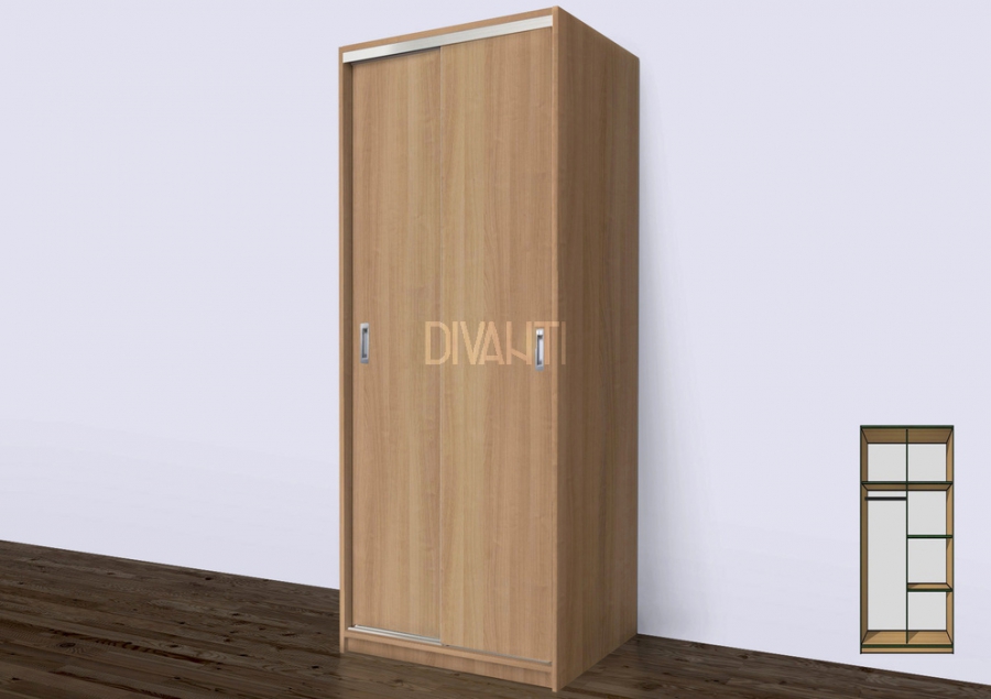 Šatní skříň Alena s posuvnými dveřmi. Zapuštěné úchytky PESARA 128, dorazové kartáče zdarma.