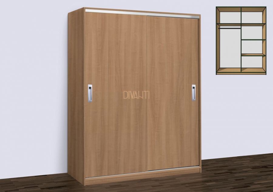 Šatní skříň Alena s posuvnými dveřmi. Zapuštěné úchytky PESARA 128, dorazové kartáče zdarma.