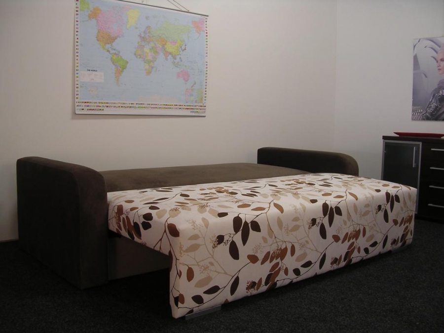 ANDREA - elegantní rozkládací pohovka s polštáři a područkami.Celočalouněná rozkládací pohovka s úložným prostorem, dvěma opěradlovýma polštářema a područkami, vhodná i pro každodenní spaní.Předností pohovky je praktické a jednoduché rozkládní, pomocí speciálního mechanizmu tzv. Automatu. Pohovka má úložný prostor.Kostra je tvořena kombinací masivu a dřevařských velkoplošných materiálů. Sedací a lehací plochy jsou tvořeny pružinovým jádrem (tlačné pružiny) a povrchem z kvalitních PPUR pěn. Polštáže plněny PUR drtí.K pohovce je možné zakoupit spoustu doplňků, jako jsou polštáře, malé opěrné polštářky, stolky na područky apod.Pokud budete mít zájem neváhejte a pište na email info@novy-byt.cz nebo volejte na číslo 777 788 914. Pohovku je možné objednat v libovolné potahové látce dle vzorníku. Cena se odvíjí od vyšší skupiny látek (řazeny podle abecedy).Pokud máte zájem o kombinaci dvou látek, kontaktujte nás prosím, je potřeba upřesnit která látka je na polštáře a která na zbytek sedačky.