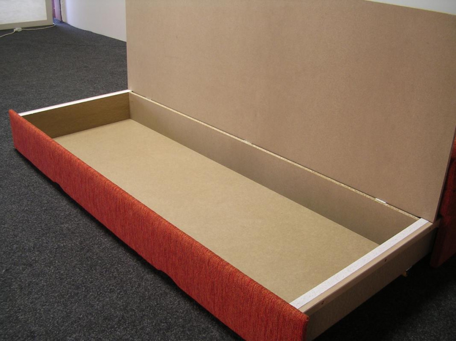 Celočalouněná rozkládací pohovka s úložným prostorem.
