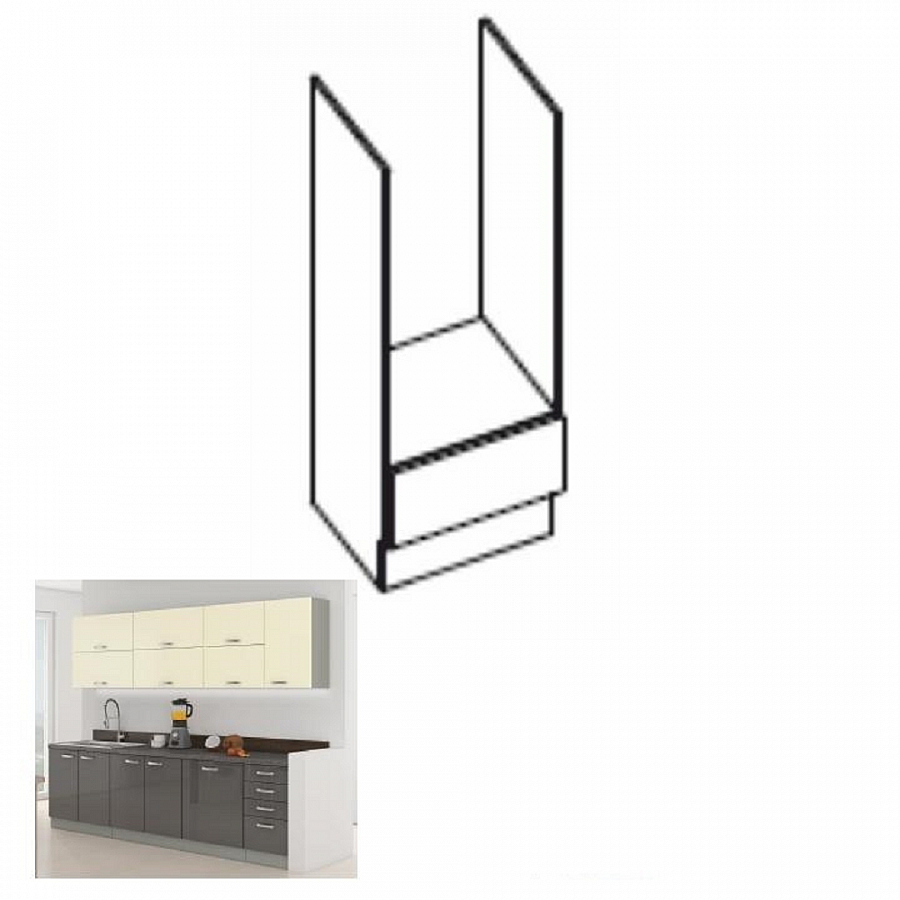 Dolní skříňka, materiál: DTD laminovaná, provedení: šedý vysoký lesk, rozměry ŠxVxH: 60x82x52 cm. Je určena k zakomponování sporáku do kuchyňské linky. Dodáváno v demontu.Bez pracovní desky.