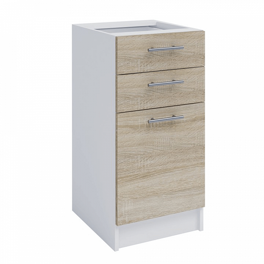 dolní skříňka S - 40SZ2, materiál: DTD laminovaná, barevné provedení: dub sonoma / bílá, korpus: bílá, dvířka: dub sonoma. Rozměry ŠxVxH: 40x82x46 cm.
