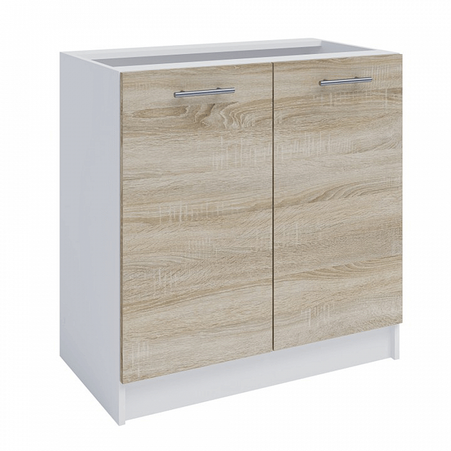 dolní skříňka S - 80, materiál: DTD laminovaná, barevné provedení: dub sonoma / bílá, korpus: bílá, dvířka: dub sonoma. Rozměry ŠxVxH: 80x82x46 cm. Tloušťka materiálu: 16 mm Dodáváno v demontu.