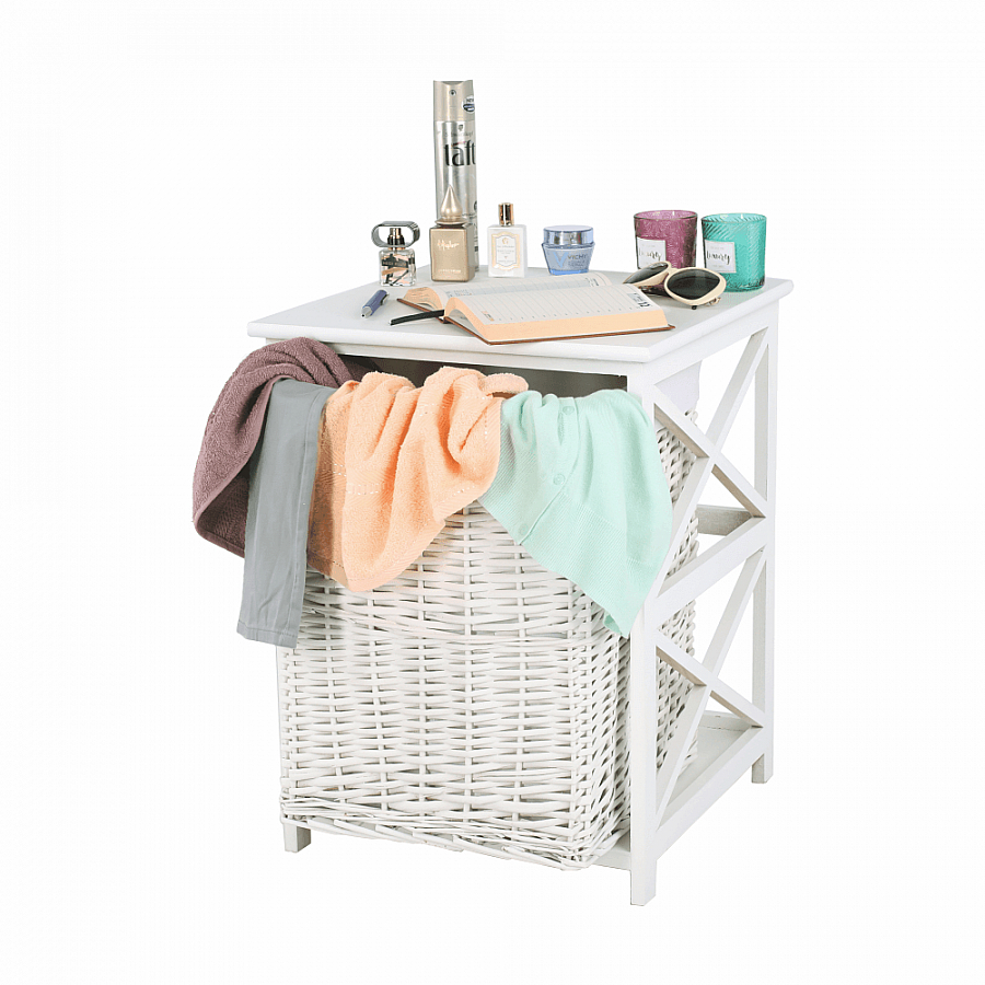 Koš na prádlo Rafaello Materiál: proutí / dřevo / látka Barva: bílá Rozměry (ŠxHxV): 46x46x60 cm Dodávané v monte.