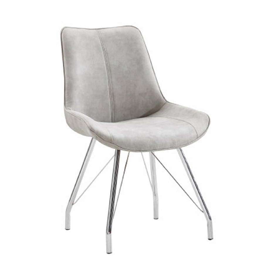 Jídelní židle MADORA Materiál: látka s efektem broušené kůže / chrom Barva: šedá Rozměry (ŠxHxV): 54x60x87 cm Hloubka sedu: 54 cm Výška sedu: 48 cm Nosnost: 110 kg Dodávané v demontu.