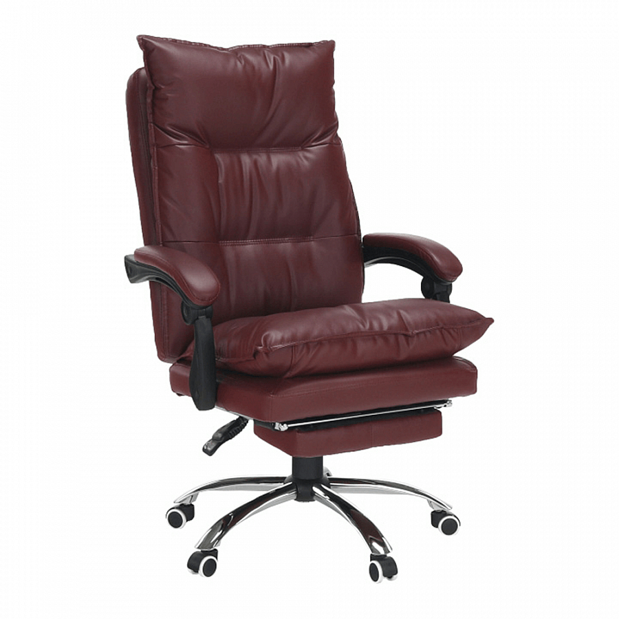 Kancelářské křeslo DRAKE s polohovací opěrkou zad a výsuvnou podnoží. Materiál: ekokůže / kov Barva: bordó / chrom Rozměry (ŠxHxV): 72x85x111-118 cm Výška sedu: 56-64 cm Hloubka sedu: 51 Nosnost: 110 kg Opěrka zad (ŠxV): 53x68 cm Sedadlo (ŠxH): 53x50 cm