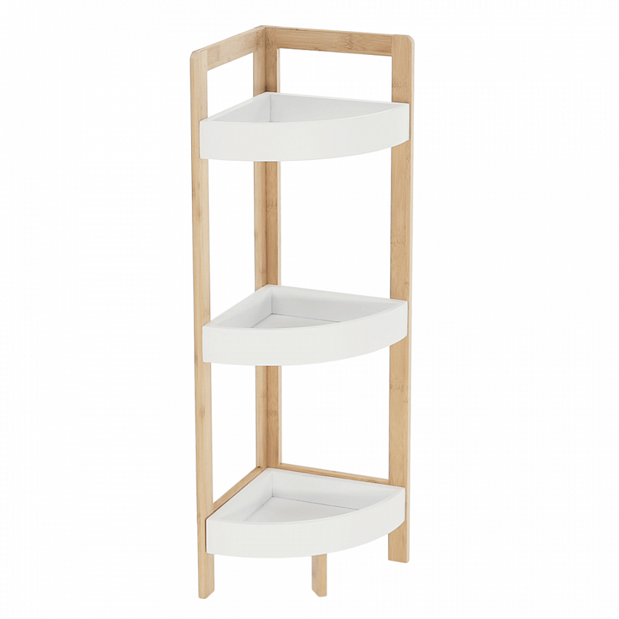 Rohový regál FONG Materiál: MDF / lakovaný bambus Barva: bílá / přírodní bambus Rozměry (ŠxHxV): 23x23x77 cm Dodávané v demontu.