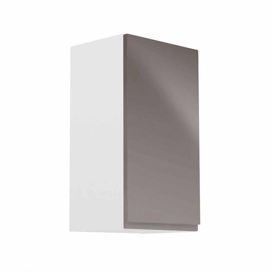 Horní skříňka, bílá / šedý extra vysoký lesk, pravá, AURORA G40