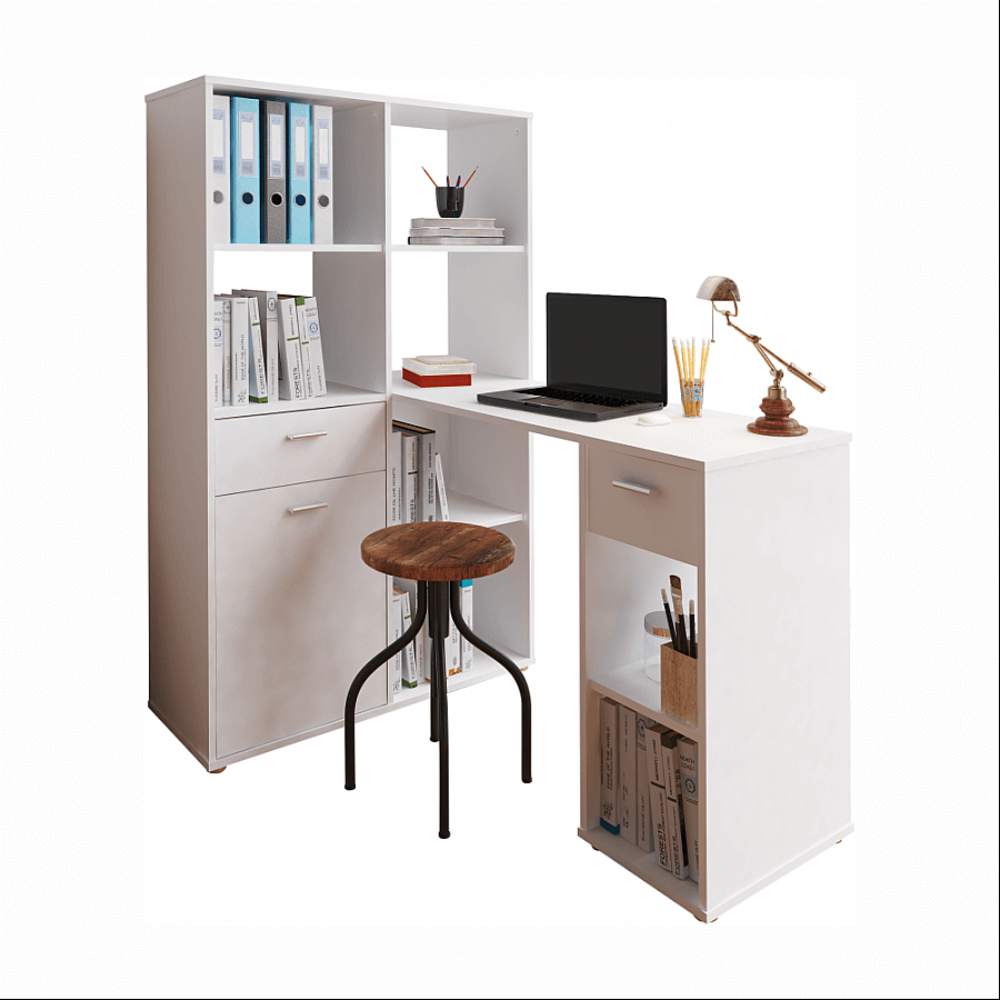 Materiál: DTD laminovaná Barva: bílá Rozměry (ŠxHxV): 124x90x145 cm Tloušťka materiálu: 16 mm S regálem dva šuplíky skříňka Otevřený úložný prostor S úchytkami Kvalitní slovenský výrobek Dodávané v demontu