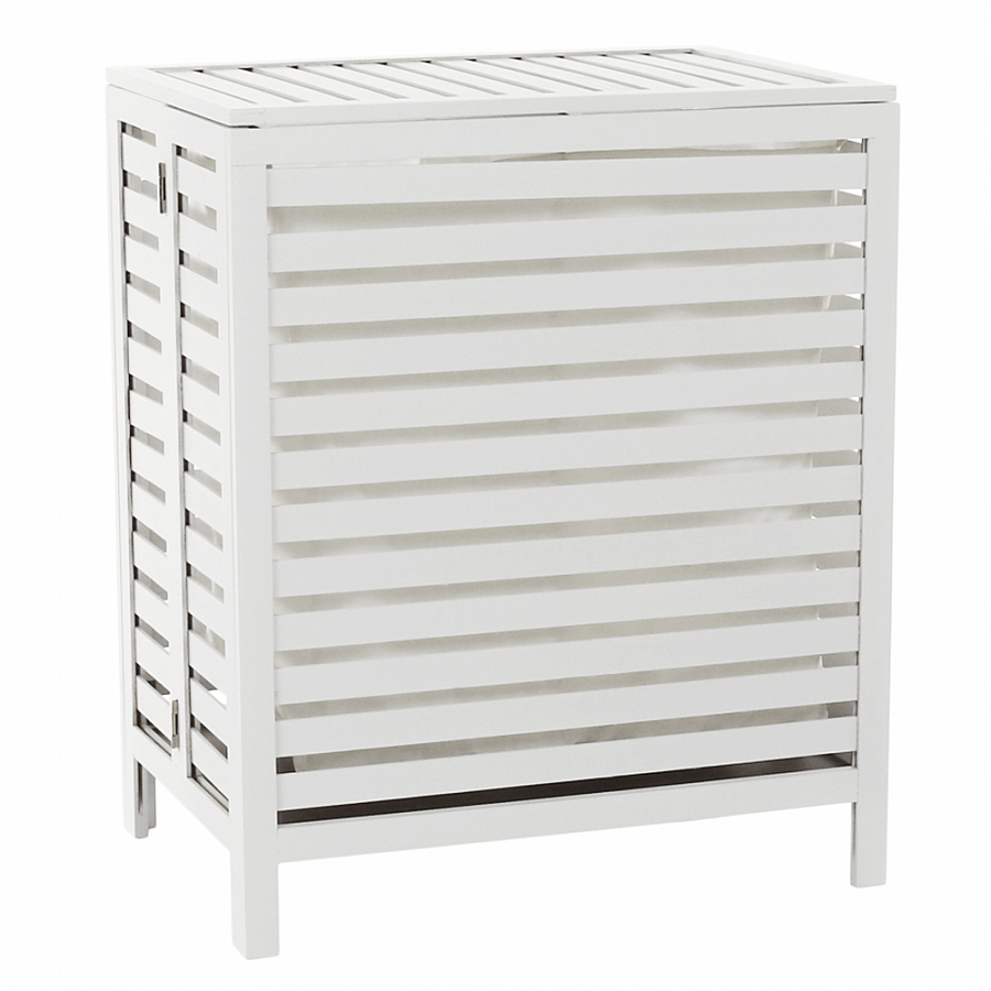 Materiál: bambus / látka Farba: biela Rozmery (ŠxHxV): 50x46x60 cm Vyberateľné látkové vrece Látkové krajiny môžu prať v práčke Objem: 105 litrov Odvetrávaný úložný priestor Úložný priestor rozdelený na dve časti Dodávané v monte