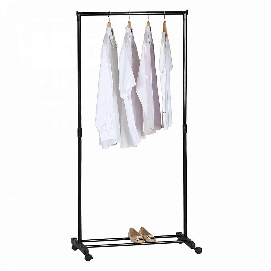 Materiál: kov / plast Barva: černá Rozměry (ŠxHxV): 78,5x41,5x165 cm praktický pojízdný S kolečky Dvě kolečka s brzdou S policí z 2 tyčí Dodávané v demontu