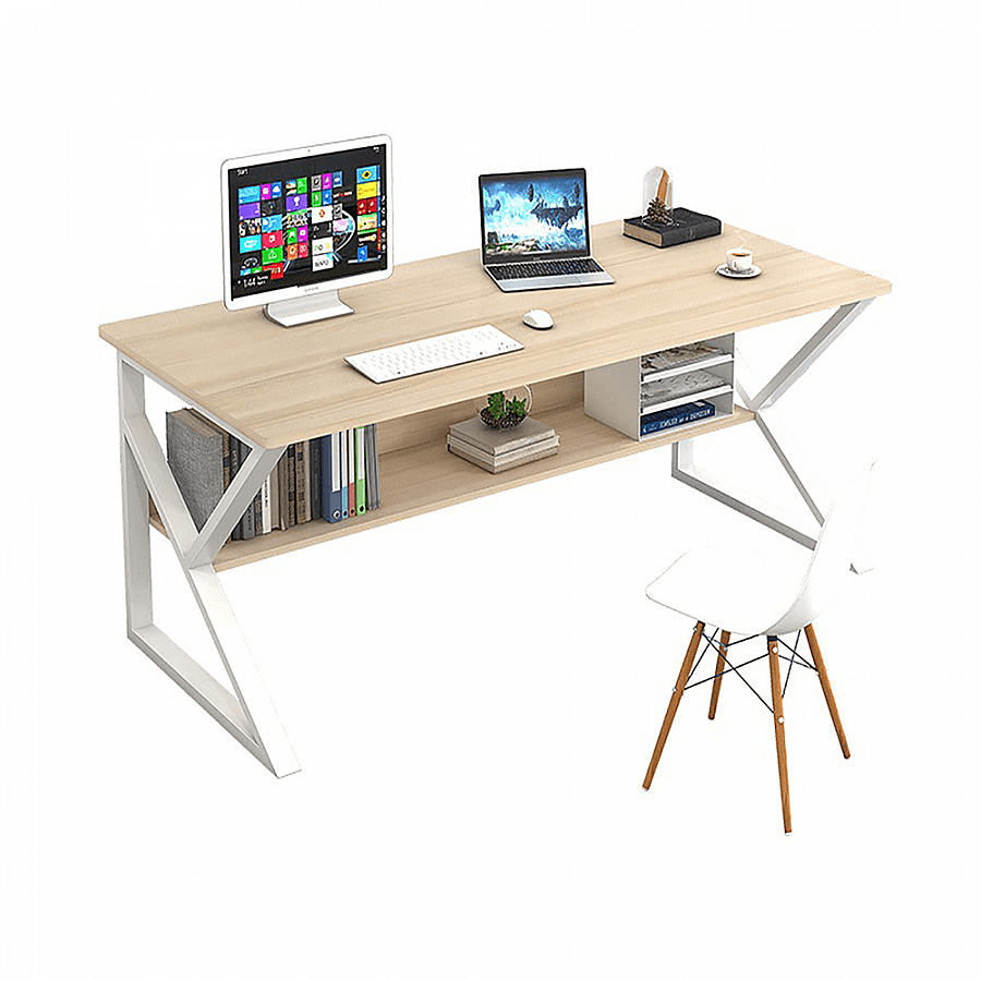 Psací stůl, s policí, dub přírodní / bílá, TARCAL 80