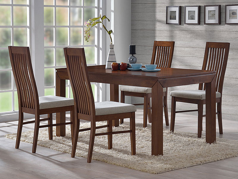 Stůl i židle jsou vyrobené z masivního kaučukového dřeva.