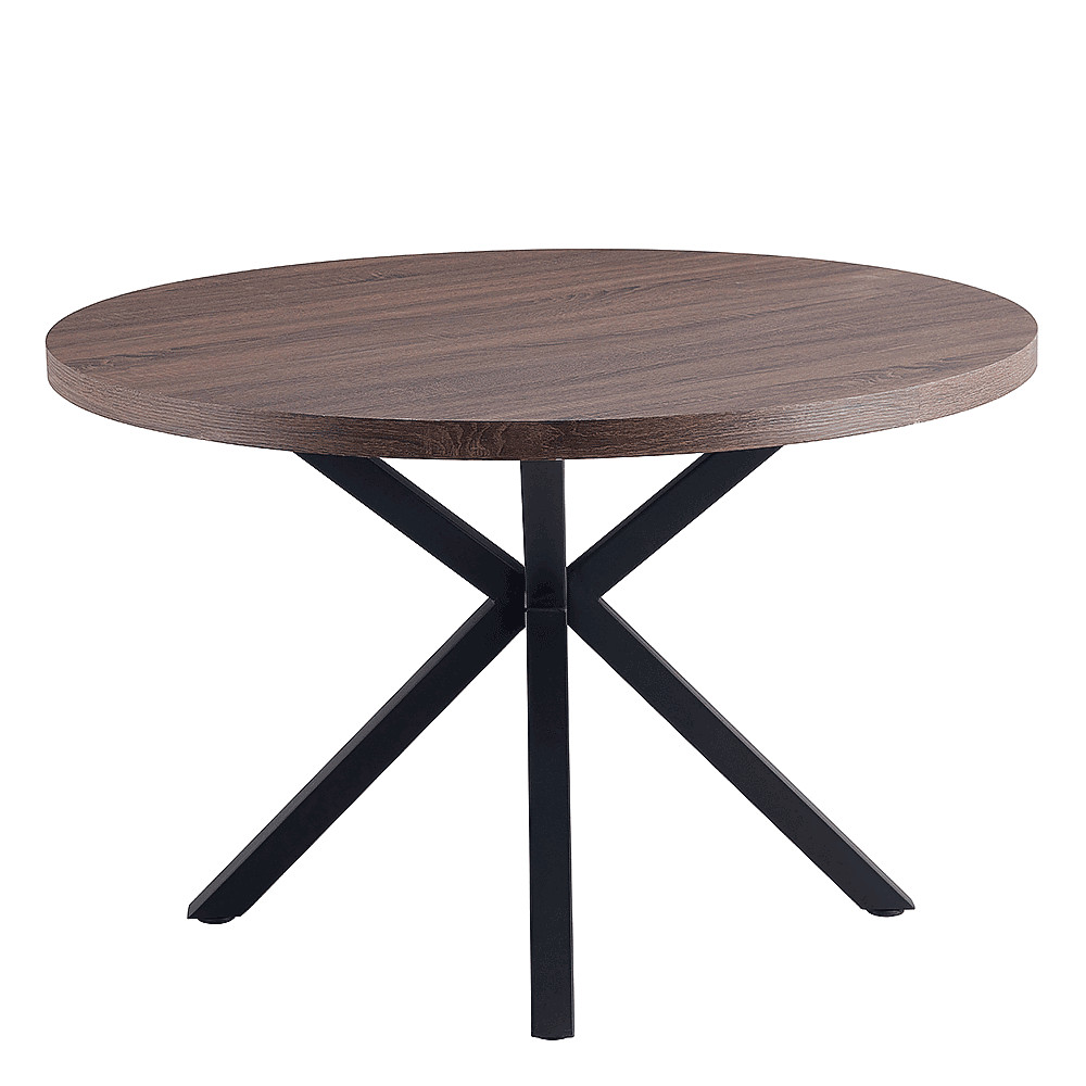 Jedálenský stůl MEDOR Ukradený materiál: MDF Farba: tmavý dub Konstrukce nohy: kov Farba: čierna Rozmery PxV: 120x76 cm Okrúhly Průmyslová ocel Dodávané v demonte