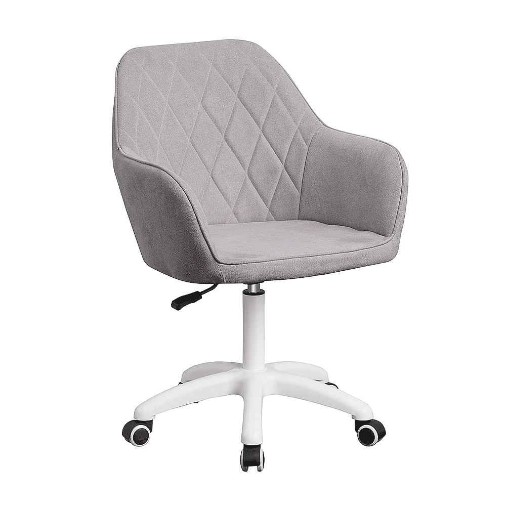 Materiál: látka / kov Barva: šedá / bílá Oděruodolnost textilie podle testu Martindale: 80 000 oděrek Rozměry (ŠxHxV): 58x55x80-90 cm Nastavení výšky křesla Nastavitelná výška sedu: 42-52 cm Hloubka sedu: 47cm Maximální nosnost: 90 kg otáčivé pěticípá růžice na kolečkách Dodávané v demontu